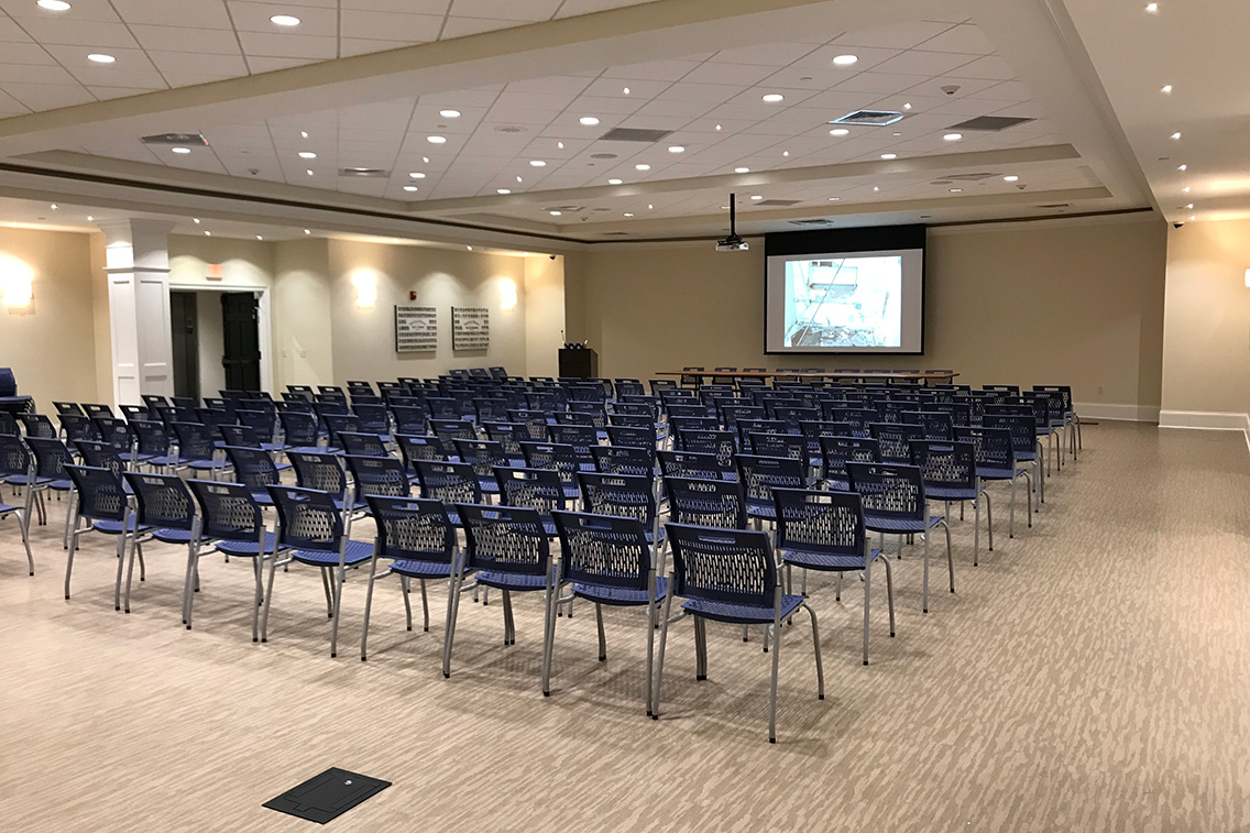 The dining room, located adjacent to the chapter room, provides a space large enough to comfortably accommodate the entire chapter. This intentional adjacency allows the two spaces to work together, supporting both formal gatherings and everyday life. Filled with natural light and designed for flexibility, the dining room serves as a hub for shared meals, studying, and informal meetings.