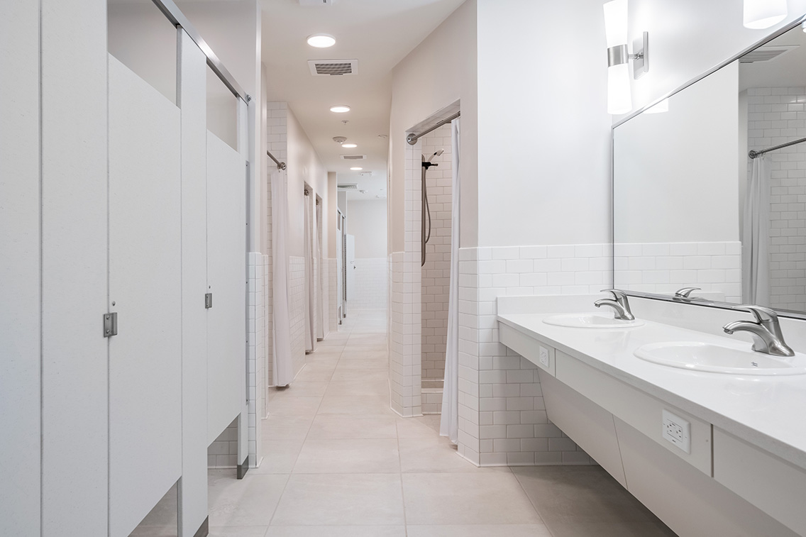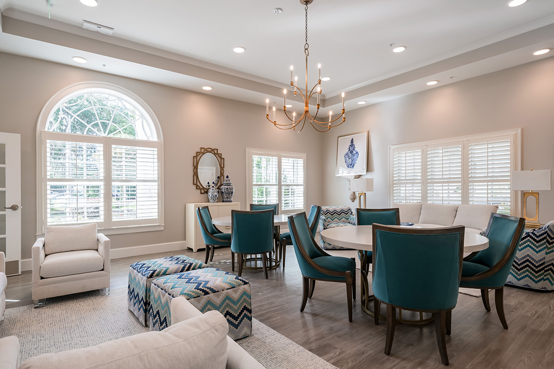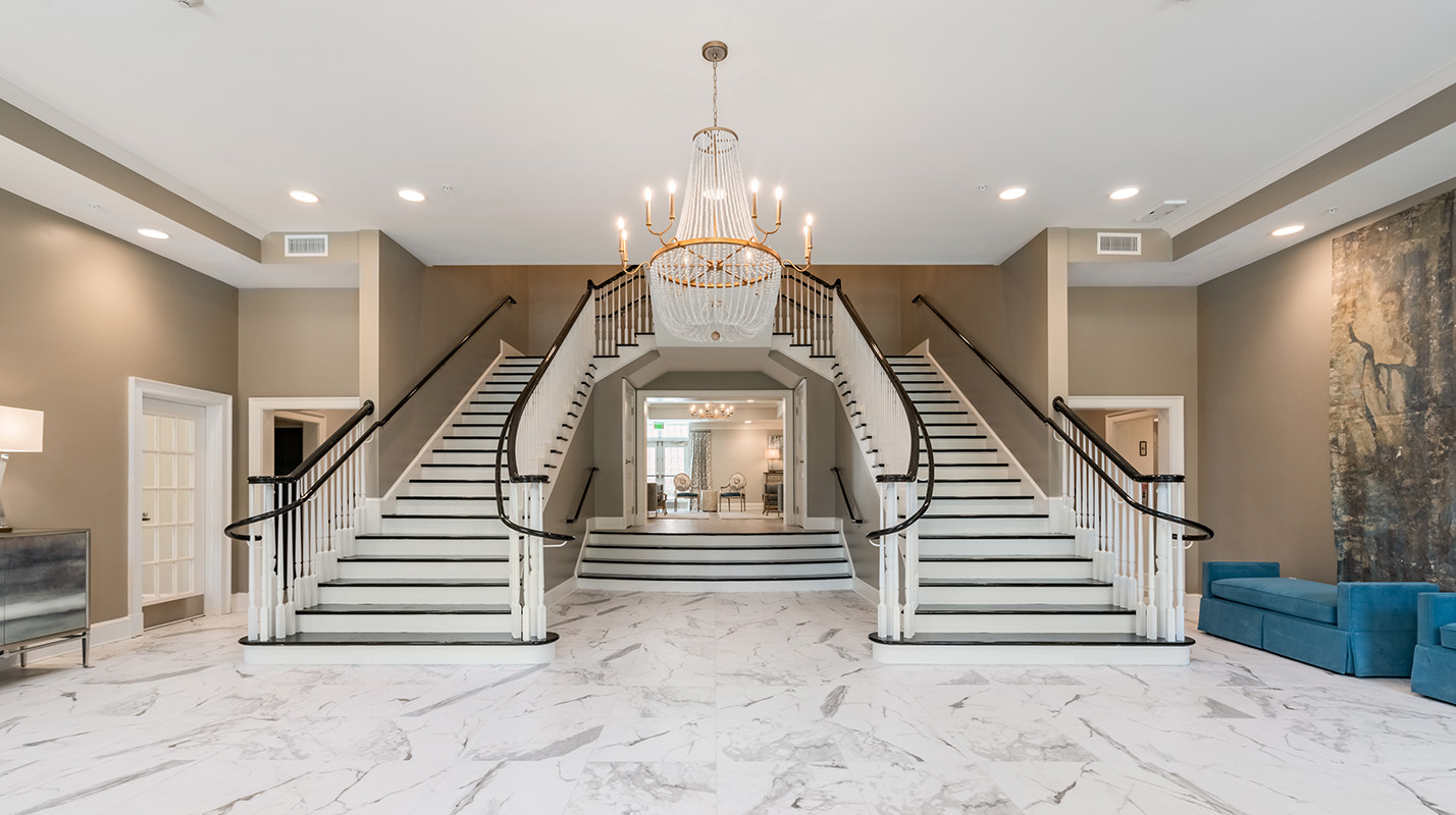 The 5,750-square-foot addition accommodates an entry foyer with a grand stair, house director suite, study rooms and interview/testing rooms to either side. Seven new sleeping rooms on the second floor of the addition increased the bed count from 51 to 61 across 29 rooms. An elevator connects the two levels of the Main Floor with the Second Floor making the house fully accessible. The renovation included a new servery and commercial kitchen. The dining room was expanded to seat 180 for meals and up to 260 on chapter night.